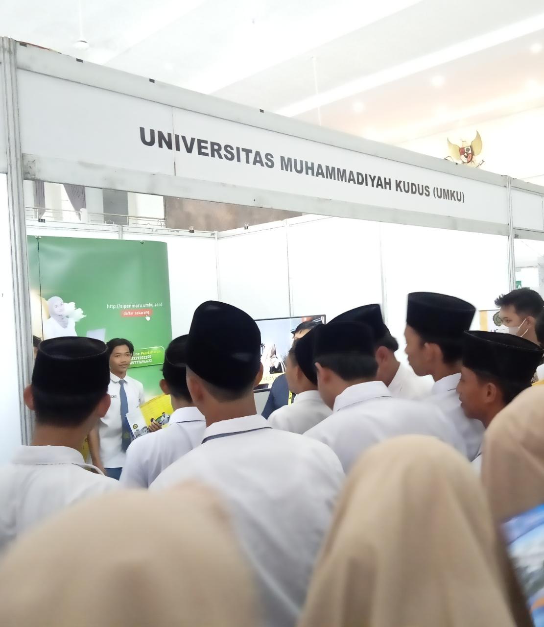 Salah satu stand yang menyita banyak perhatian siswa adalah Stand Universitas Muhammadiyah Kudus. Ratusan siswa terlihat menggali informasi seputar program studi yang terdapat di UMKU, biaya studi, dan tawaran beasiswa. Puluhan siswa juga terlihat langsung daftar secara on line langsung di lokasi stand. Ria Puspita salah satu pengunjung dari SMA N 1 Gebog juga berminat mendaftar D3 Keperawatan UMKU. “Saya ingin membantu orang-orang yang sakit, karena itu ingin masuk di D3 Keperawatan UMKU, selain deket, kampusnya juga bagus” ungkapnya.
