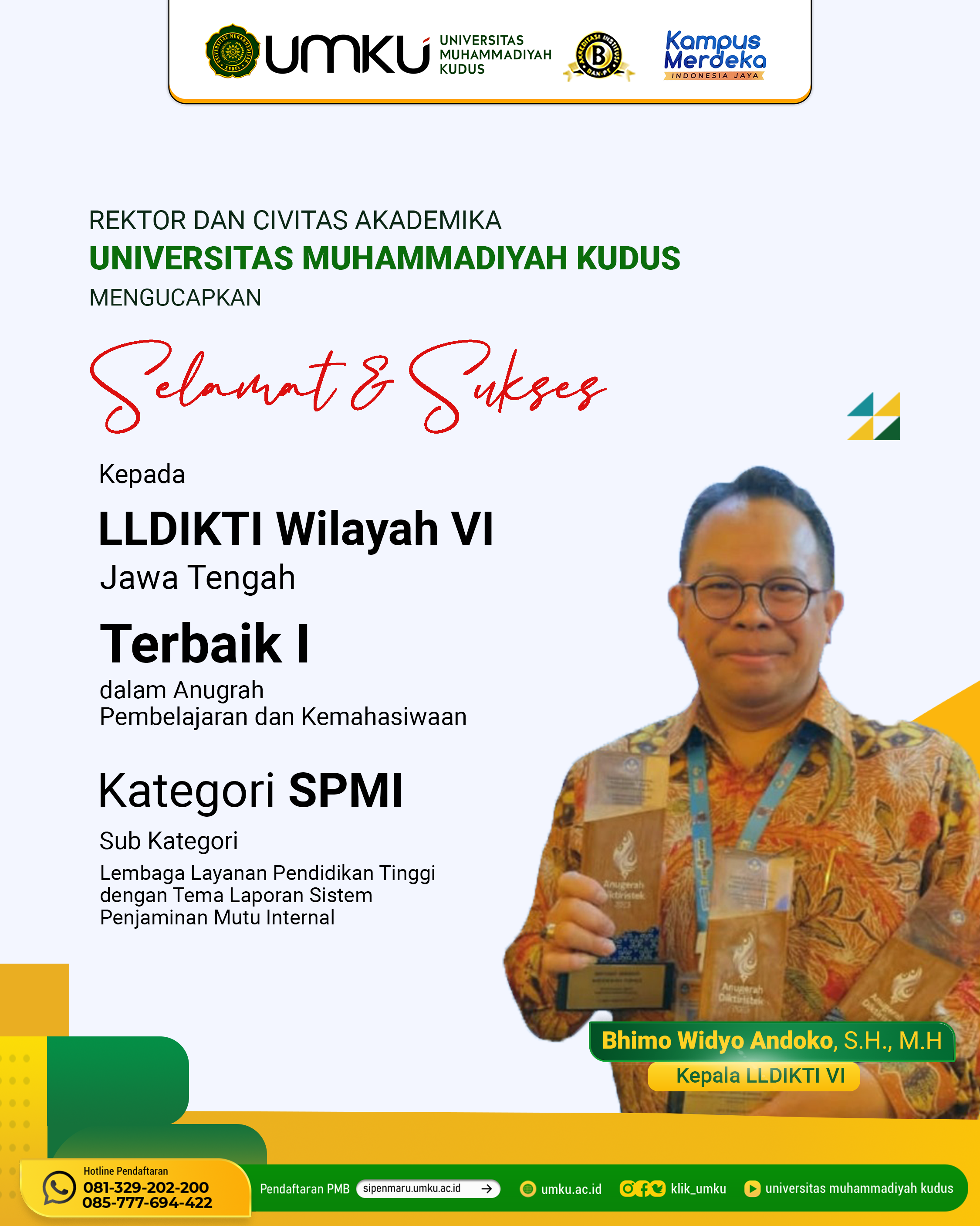 Ucapan Selamat LLDIKTI Wilayah VI Jawa Tengah Terbaik I Anugrah Pembelajaran dan Kemahasiswaan Risma Widiyanti 14 Desember 2023