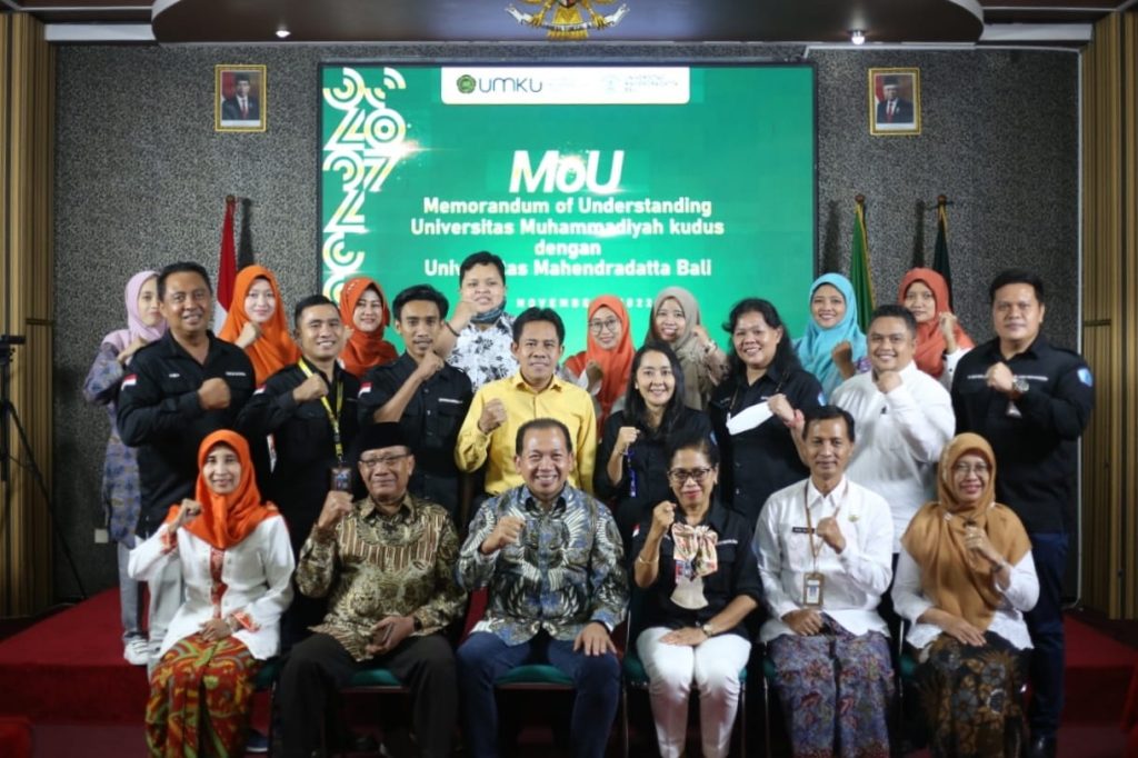 Penandatangan Nota Kesepahaman (memorandum of understanding/MoU) dilakukan oleh masing-masing rektor, masing-masing dekan di Universitas Muhammadiyah Kudus dan Universitas Mahendradatta Bali. Kerja sama ini merupakan bukti keseriusan keduanya dalam upaya meningkatkan kualitas pelaksanaan Tri Dharma Perguruan Tinggi (Penelitian dan Pengabdian kepada Masyarakat) hingga lintas daerah.